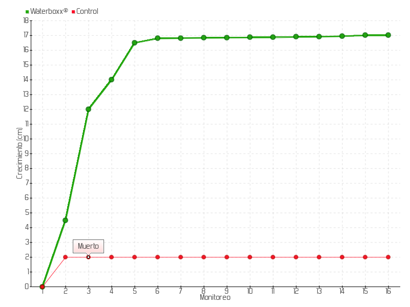 | 2 | 08/05/2015 | 12.50 cm | 4.50 cm | 0.1607 cm/día | 4.50 cm |