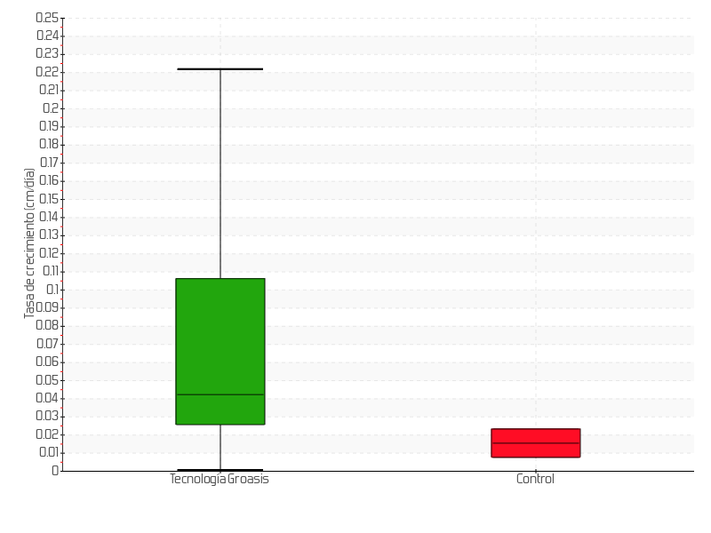 | 5 | 12/08/2015 | 24.50 cm | 2.50 cm | 0.0735 cm/día | 16.50 cm |