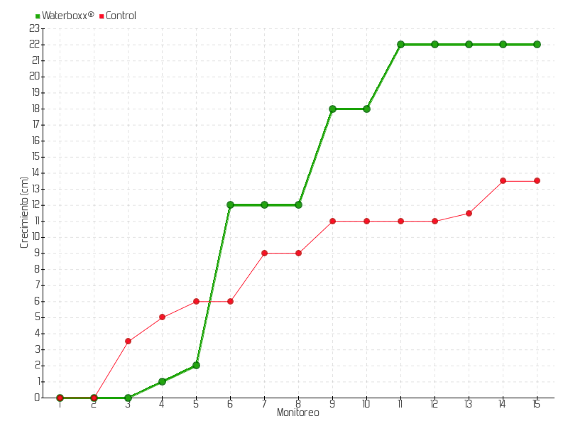 | 9 | 01/06/2016 | 66.00 cm | 6.00 cm | 0.1091 cm/día | 18.00 cm |