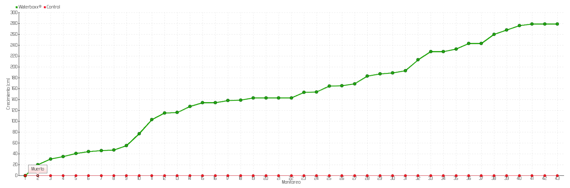 Monitoreo | Fecha | Altura | Crecimiento | Tasa de crecimiento | Crecimiento total |