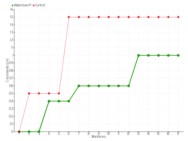 13 | 13/11/2013 | 16.00 cm | 0.40 cm | 0.0286 cm/día | 1.00 cm |