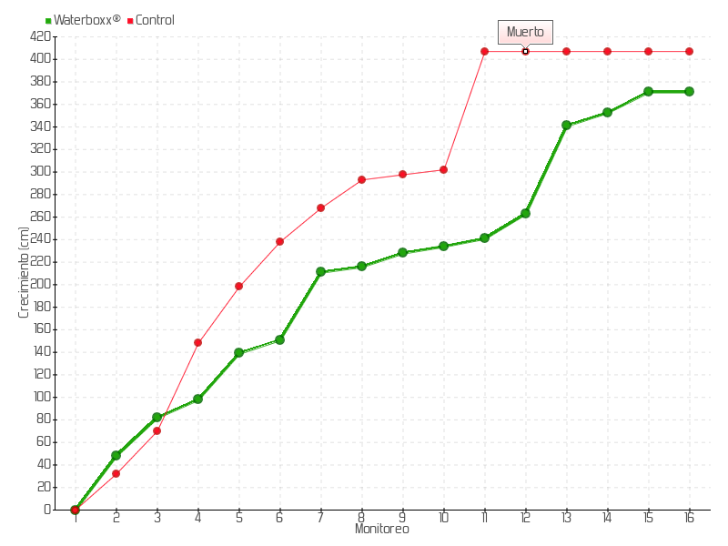 6 | 19/01/2016 | 175.00 cm | 12.00 cm | 0.3871 cm/día | 151.00 cm |