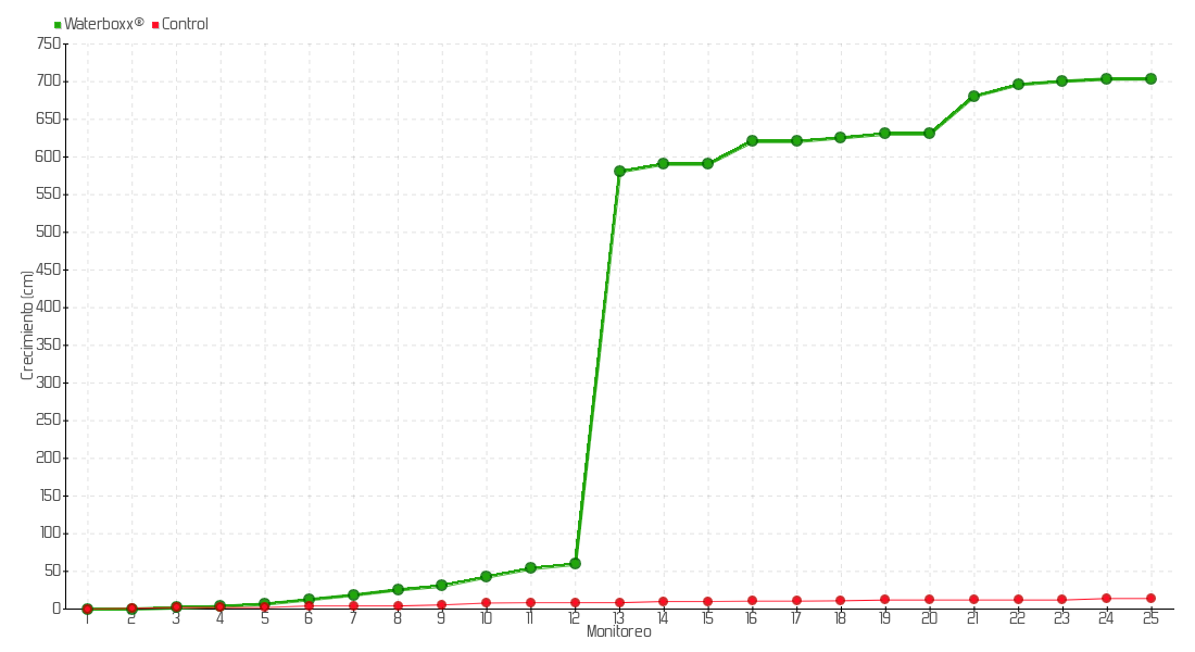 21 | 22/09/2020 | 700.00 cm | 50.00 cm | 0.1433 cm/día | 680.50 cm |
