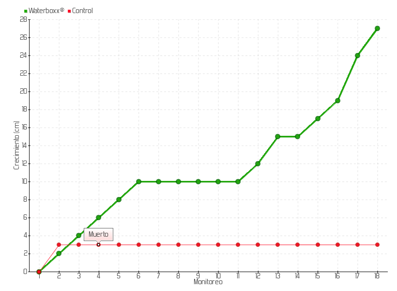 | Monitoreo | Fecha | Altura | Crecimiento | Tasa de crecimiento | Crecimiento total |