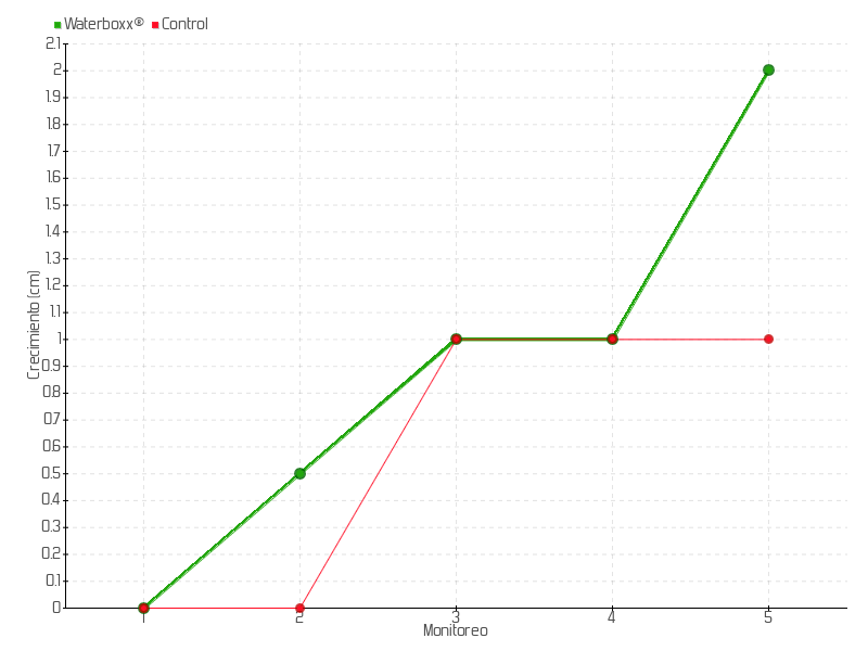 | 5 | 12/11/2015 | 11.00 cm | 1.00 cm | 0.0238 cm/día | 2.00 cm |