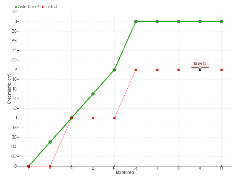 | Monitoreo | Fecha | Altura | Crecimiento | Tasa de crecimiento | Crecimiento total |