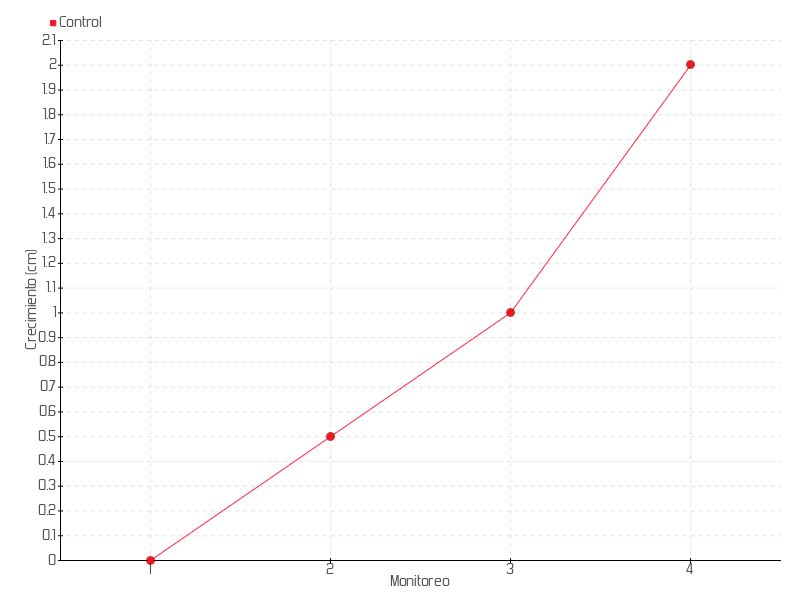 Monitoreo | Fecha | Altura | Crecimiento | Tasa de crecimiento | Crecimiento total |