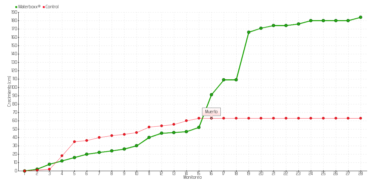 16 | 08/10/2019 | 135.00 cm | 39.00 cm | 0.2532 cm/día | 91.00 cm |