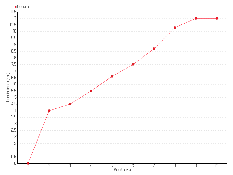 9 | 06/12/2016 | 47.00 cm | 0.70 cm | 0.0167 cm/día | 11.00 cm |