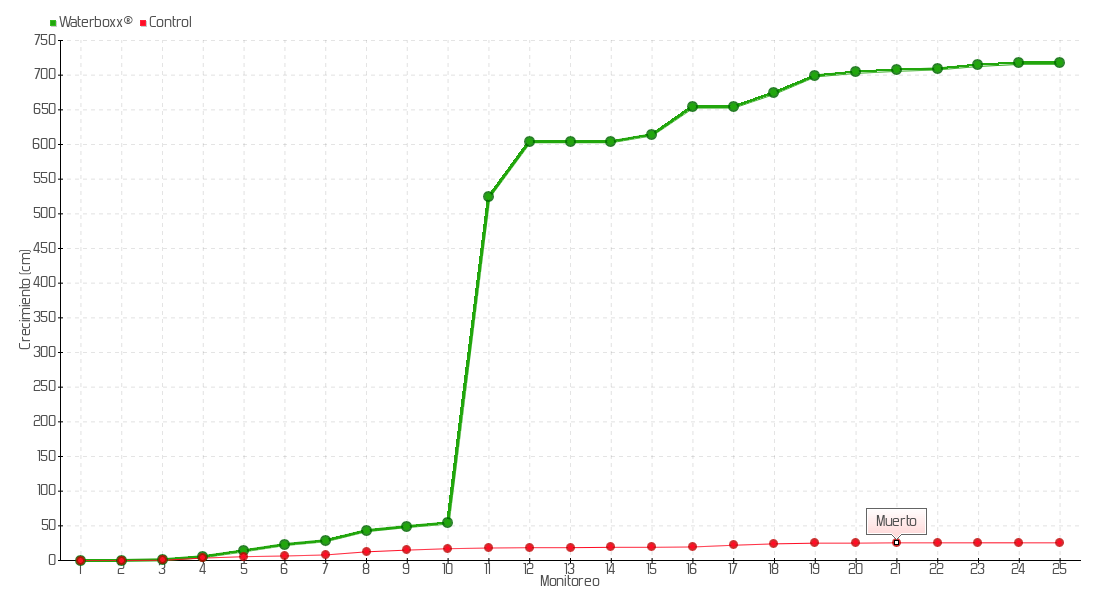19 | 18/03/2021 | 725.00 cm | 25.00 cm | 0.1412 cm/día | 699.00 cm |