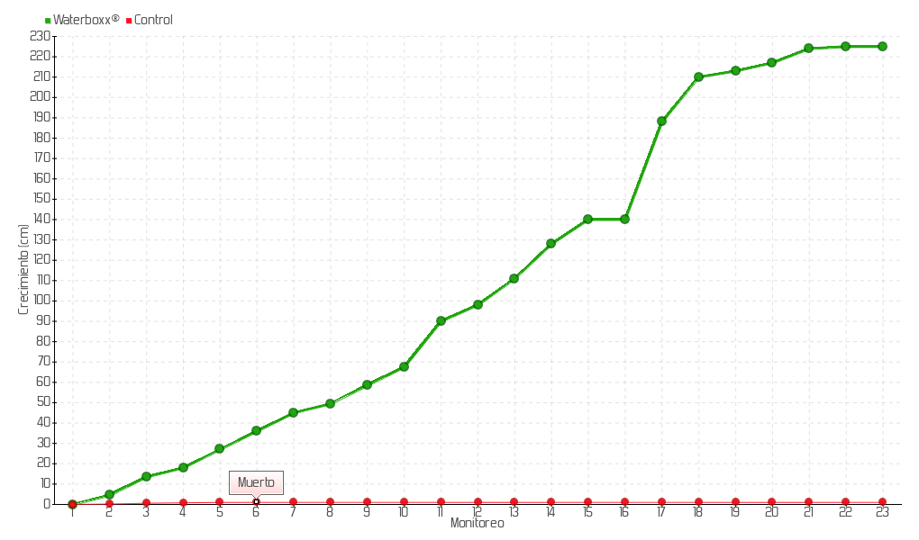 7 | 18/07/2016 | 60.00 cm | 9.00 cm | 0.1636 cm/día | 45.00 cm |