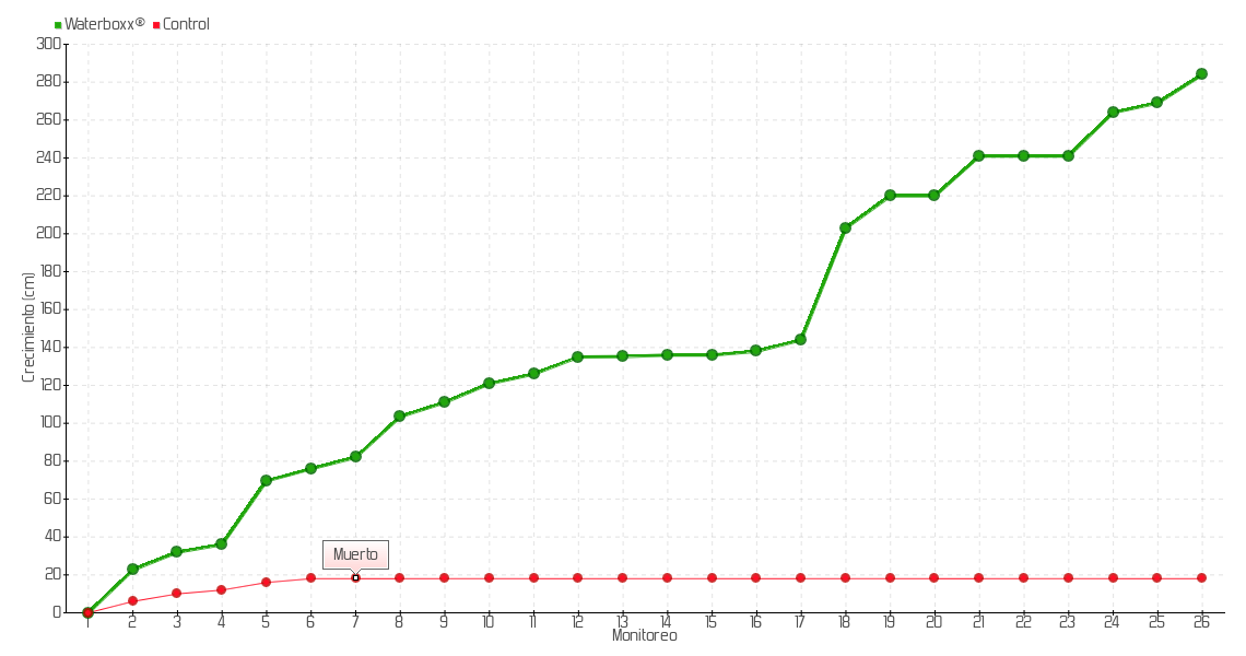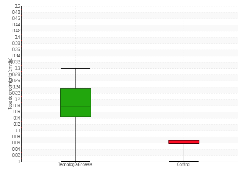| 5 | 01/07/2016 | 85.60 cm | 33.60 cm | 0.6462 cm/día | 69.60 cm |