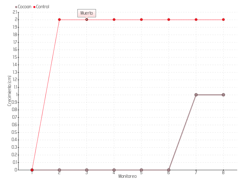 | Monitoreo | Fecha | Altura | Crecimiento | Tasa de crecimiento | Crecimiento total |