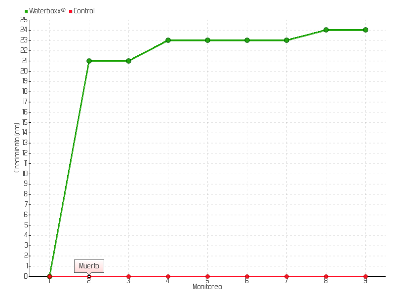 | 2 | 08/03/2016 | 45.00 cm | 21.00 cm | 0.5122 cm/día | 21.00 cm |