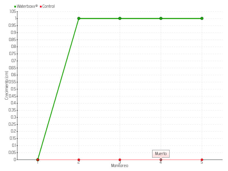 | Monitoreo | Fecha | Altura | Crecimiento | Tasa de crecimiento | Crecimiento total |