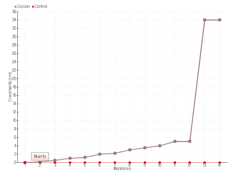 Monitoreo | Fecha | Altura | Crecimiento | Tasa de crecimiento | Crecimiento total |