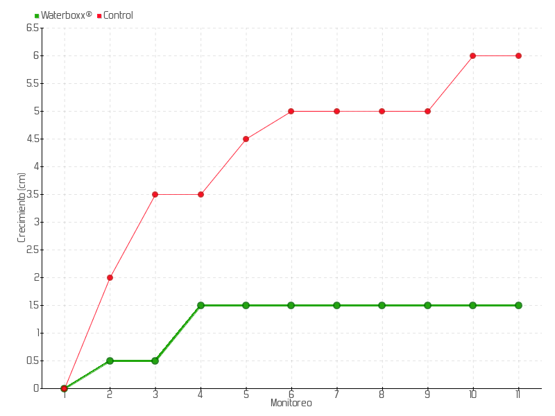 2 | 12/06/2013 | 17.00 cm | 0.50 cm | 0.0357 cm/día | 0.50 cm |