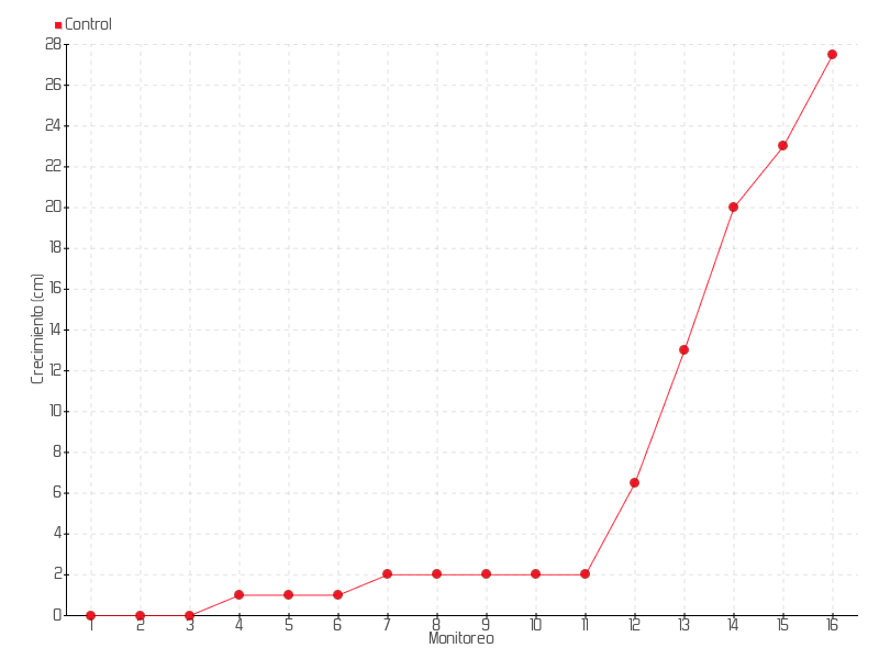 16 | 08/01/2014 | 74.50 cm | 4.50 cm | 0.3462 cm/día | 27.50 cm |