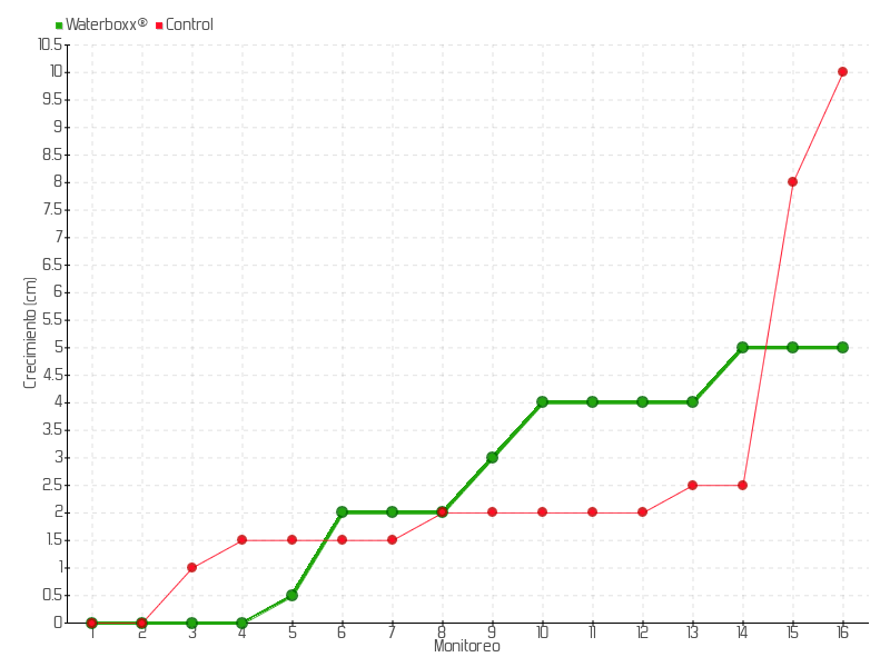 6 | 21/08/2013 | 88.00 cm | 1.50 cm | 0.1071 cm/día | 2.00 cm |