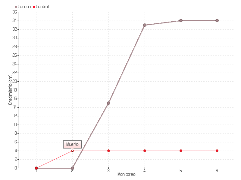 | Monitoreo | Fecha | Altura | Crecimiento | Tasa de crecimiento | Crecimiento total |