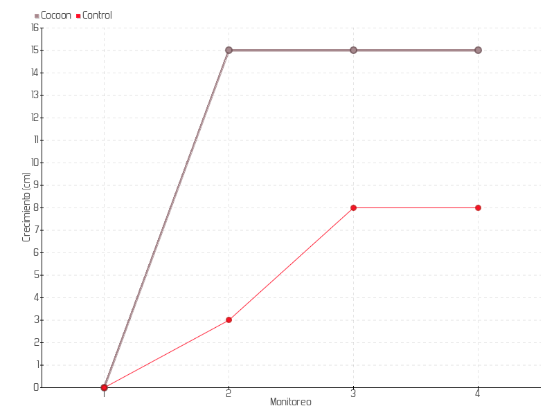 | Monitoreo | Fecha | Altura | Crecimiento | Tasa de crecimiento | Crecimiento total |