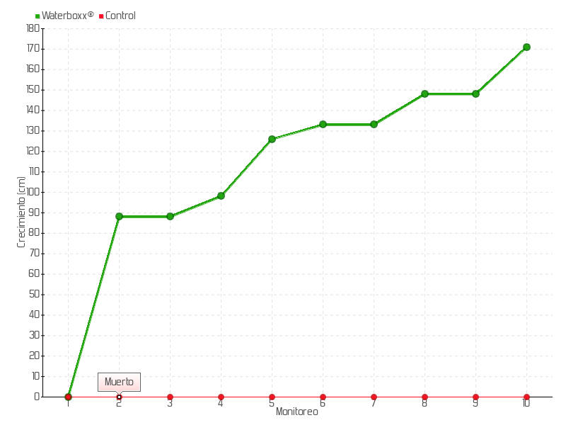 | Monitoreo | Fecha | Altura | Crecimiento | Tasa de crecimiento | Crecimiento total |