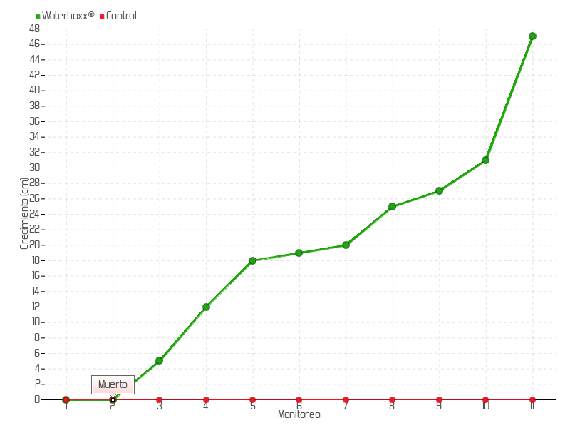 | 8 | 25/02/2020 | 46.00 cm | 5.00 cm | 0.0694 cm/día | 25.00 cm |