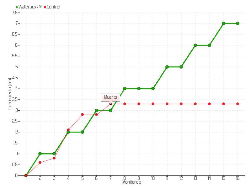 8 | 02/10/2013 | 21.00 cm | 1.00 cm | 0.0714 cm/día | 4.00 cm |