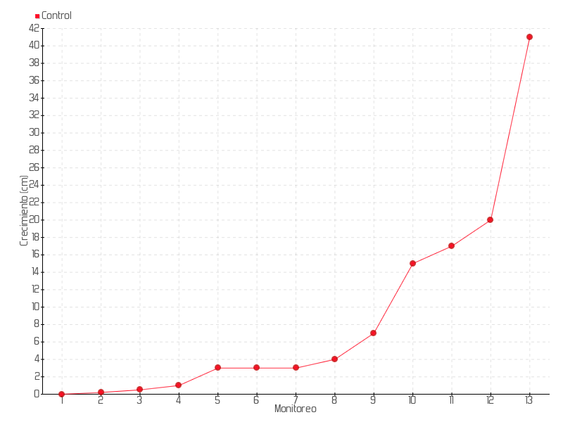 13 | 30/04/2025 | 44.00 cm | 21.00 cm | 0.0569 cm/día | 41.00 cm |