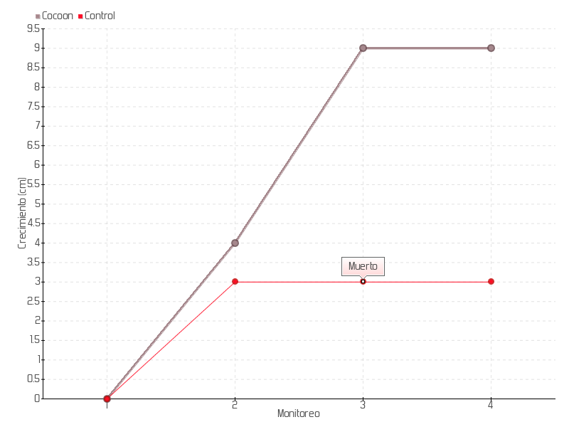 Monitoreo | Fecha | Altura | Crecimiento | Tasa de crecimiento | Crecimiento total |