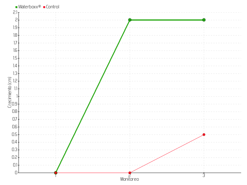 | Monitoreo | Fecha | Altura | Crecimiento | Tasa de crecimiento | Crecimiento total |