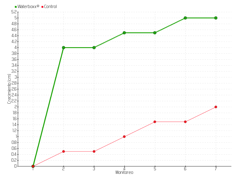 6 | 04/09/2013 | 30.00 cm | 0.50 cm | 0.0357 cm/día | 5.00 cm |