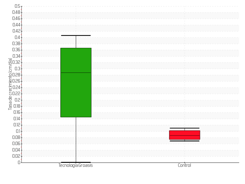 | 4 | 15/12/2017 | 7.50 cm | 2.50 cm | 0.3571 cm/día | 5.50 cm |