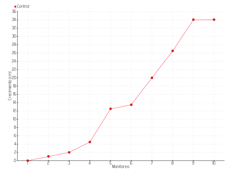 | 6 | 10/01/2018 | 15.00 cm | 1.00 cm | 0.0714 cm/día | 13.50 cm |