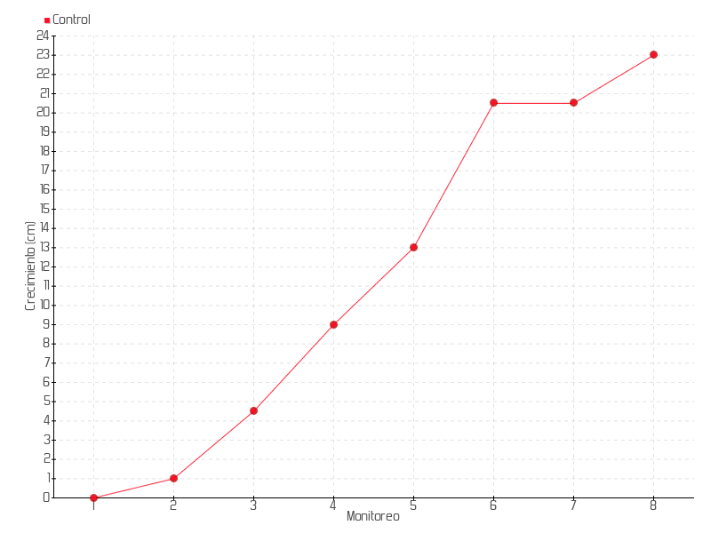 | 6 | 10/01/2018 | 22.00 cm | 7.50 cm | 0.5357 cm/día | 20.50 cm |