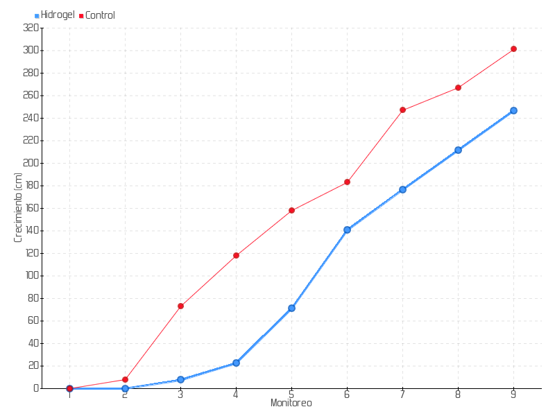 6 | 10/01/2018 | 144.00 cm | 69.50 cm | 4.9643 cm/día | 140.50 cm |