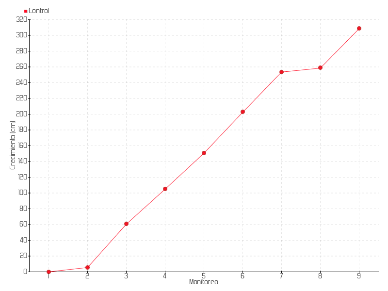 6 | 10/01/2018 | 209.00 cm | 52.00 cm | 3.7143 cm/día | 202.50 cm |