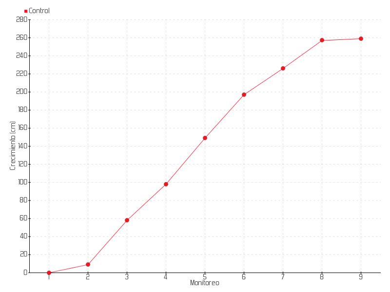 9 | 02/02/2018 | 265.00 cm | 2.00 cm | 0.2857 cm/día | 259.00 cm |