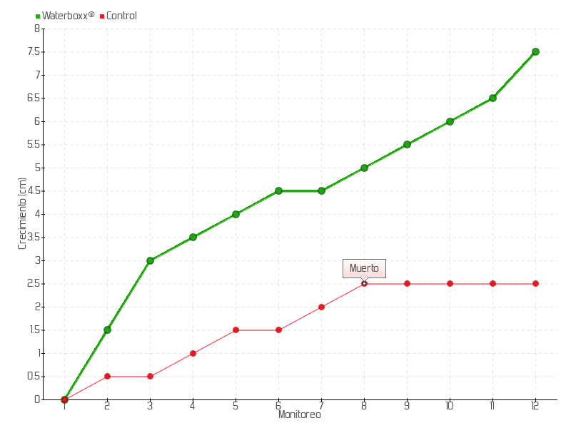 8 | 13/11/2013 | 23.00 cm | 0.50 cm | 0.0357 cm/día | 5.00 cm |