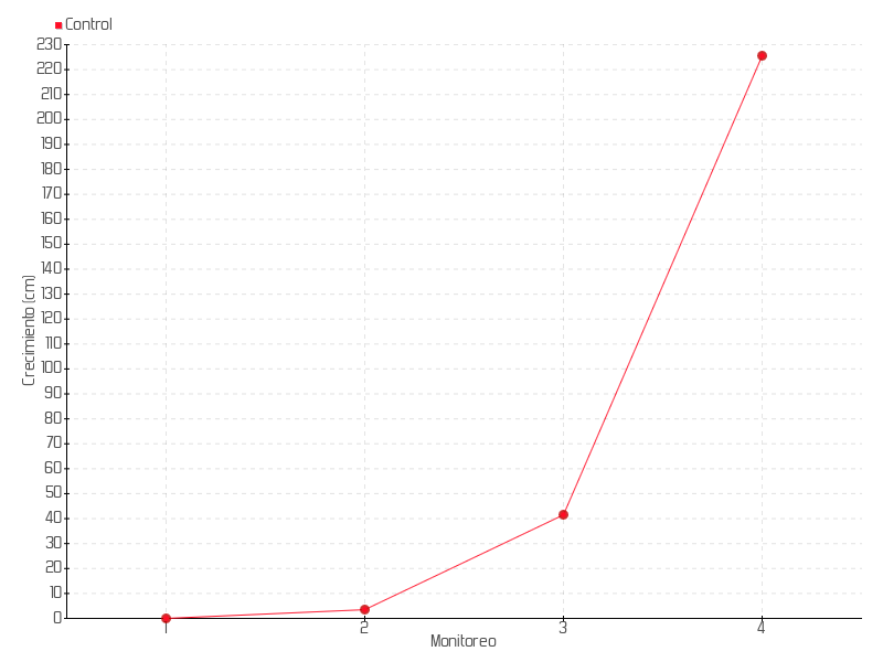 Monitoreo | Fecha | Altura | Crecimiento | Tasa de crecimiento | Crecimiento total |