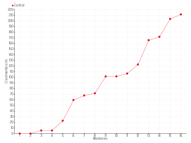 5 | 27/09/2018 | 41.00 cm | 17.00 cm | 0.1619 cm/día | 22.50 cm |