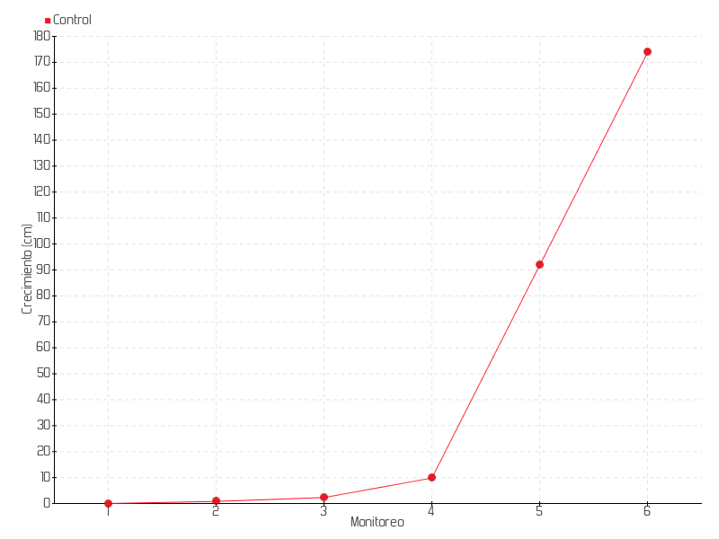 6 | 23/03/2018 | 180.00 cm | 82.00 cm | 3.9048 cm/día | 173.80 cm |