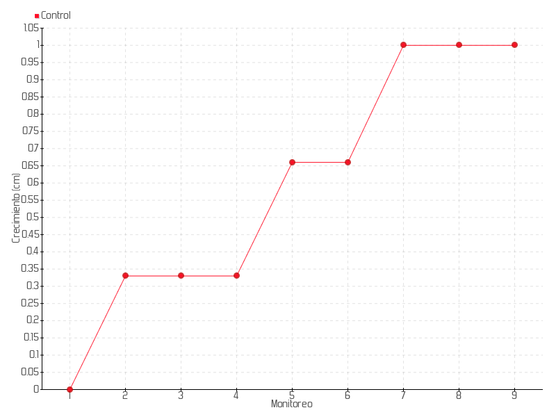 2 | 01/07/2013 | 23.33 cm | 0.33 cm | 0.0236 cm/día | 0.33 cm |