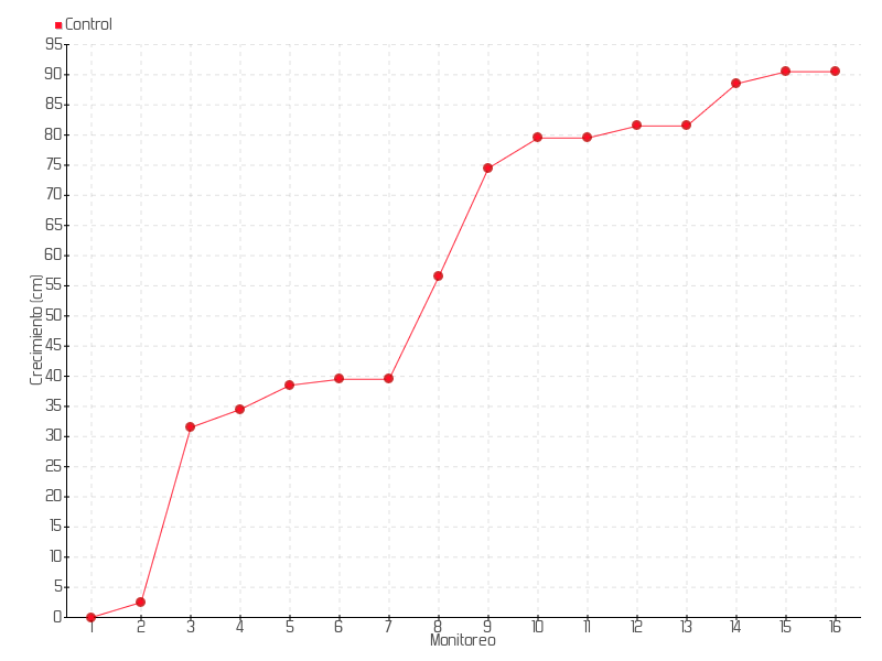 9 | 28/03/2022 | 115.00 cm | 18.00 cm | 0.1429 cm/día | 74.50 cm |