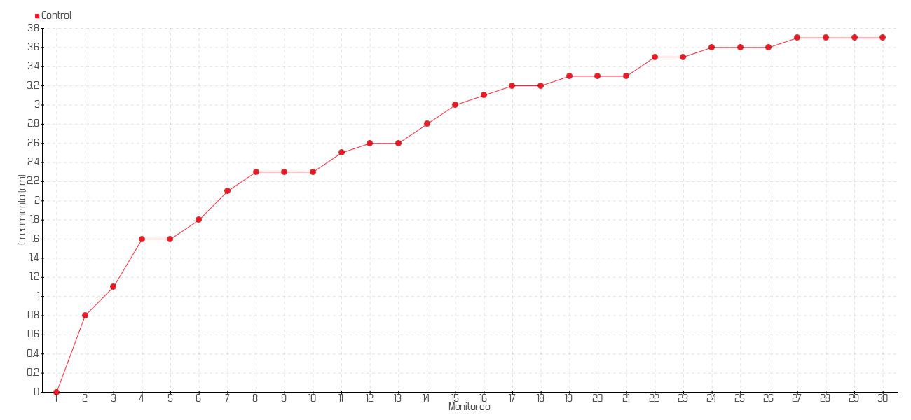 4 | 08/07/2013 | 14.30 cm | 0.50 cm | 0.0714 cm/día | 1.60 cm |