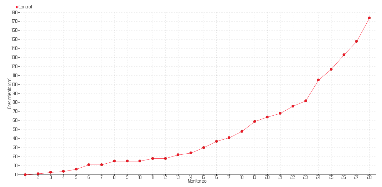 23 | 18/11/2013 | 101.00 cm | 6.00 cm | 0.8571 cm/día | 82.00 cm |