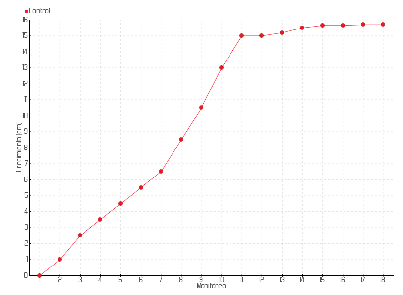 15 | 16/12/2013 | 72.65 cm | 0.15 cm | 0.0214 cm/día | 15.65 cm |