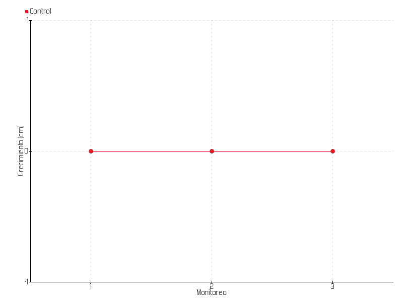 | Monitoreo | Fecha | Altura | Crecimiento | Tasa de crecimiento | Crecimiento total |