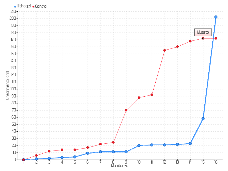6 | 12/02/2020 | 16.00 cm | 5.00 cm | 0.0355 cm/día | 9.00 cm |
