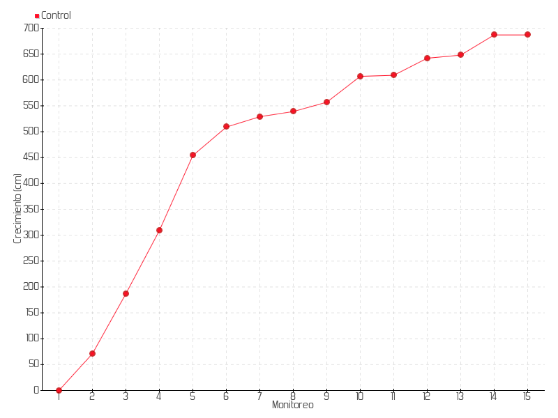 Monitoreo | Fecha | Altura | Crecimiento | Tasa de crecimiento | Crecimiento total |